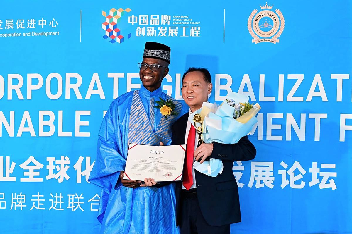 联大主席原新闻发言人吉布里尔・迪亚洛在论坛上发言,并为渠县康宁中西医结合医院颁发了“国际行业影响力品牌奖”荣誉奖杯。