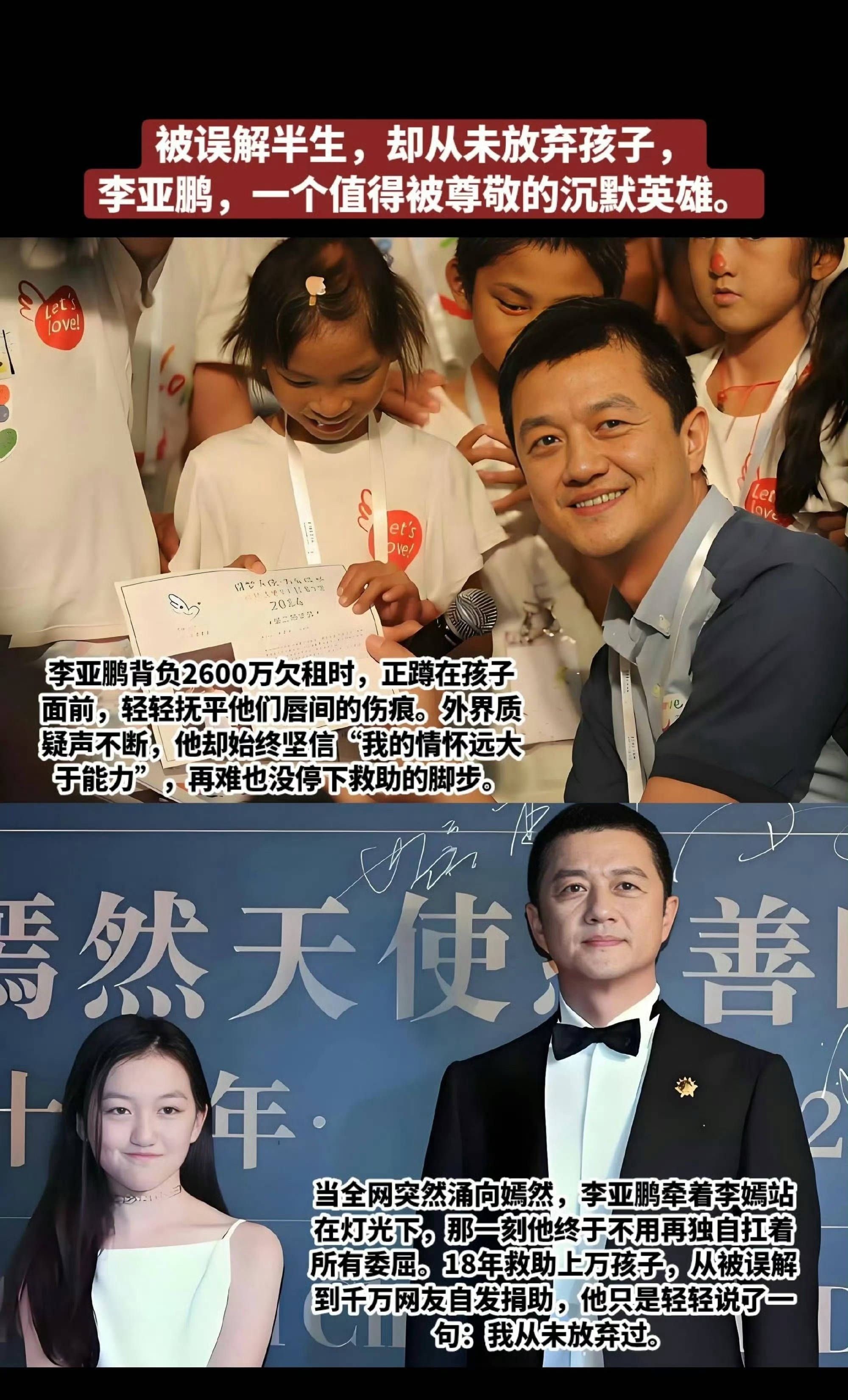 最后只想说,内娱真该多来点这样的“实在人公益”。少点套路,多点透明;少点作秀,多点真诚。毕竟对于那些等待手术的唇腭裂孩子来说,清晰可见的善款去向,比华丽的捐赠仪式更重要;持久的坚守,比一时的热度更有意义。希望李亚鹏的“透明化公益”能卷动整个行业,让更多人明白:公益的核心从来不是捐了多少钱,而是你是否真的把善意放在了心上,是否让每一分钱都发挥了该有的价值。而那些还在造谣的营销号,也该歇歇了——在16年的坚守和实打实的捐赠面前,任何抹黑都显得格外苍白无力。